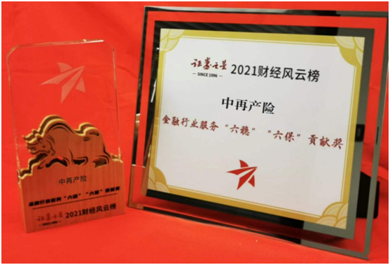中再产险荣获2021年度金融行业服务“六稳”“六保”贡献奖