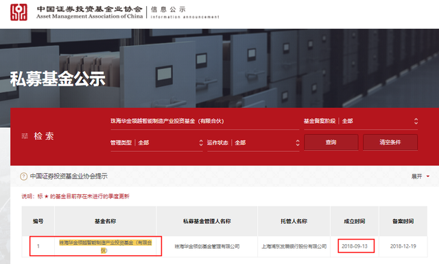 招股书显示,珠海华金领越智能制造产业投资基金(有限合伙)成立时间为2017年2月28日,但中国证券投资基金业协会披露的成立时间为2018年9月13日,相差20个月。