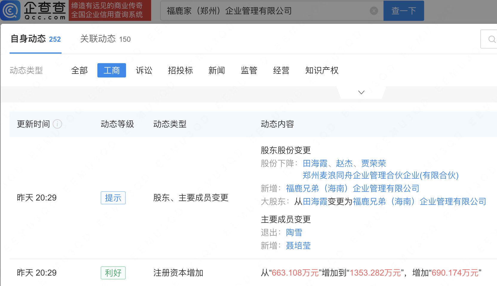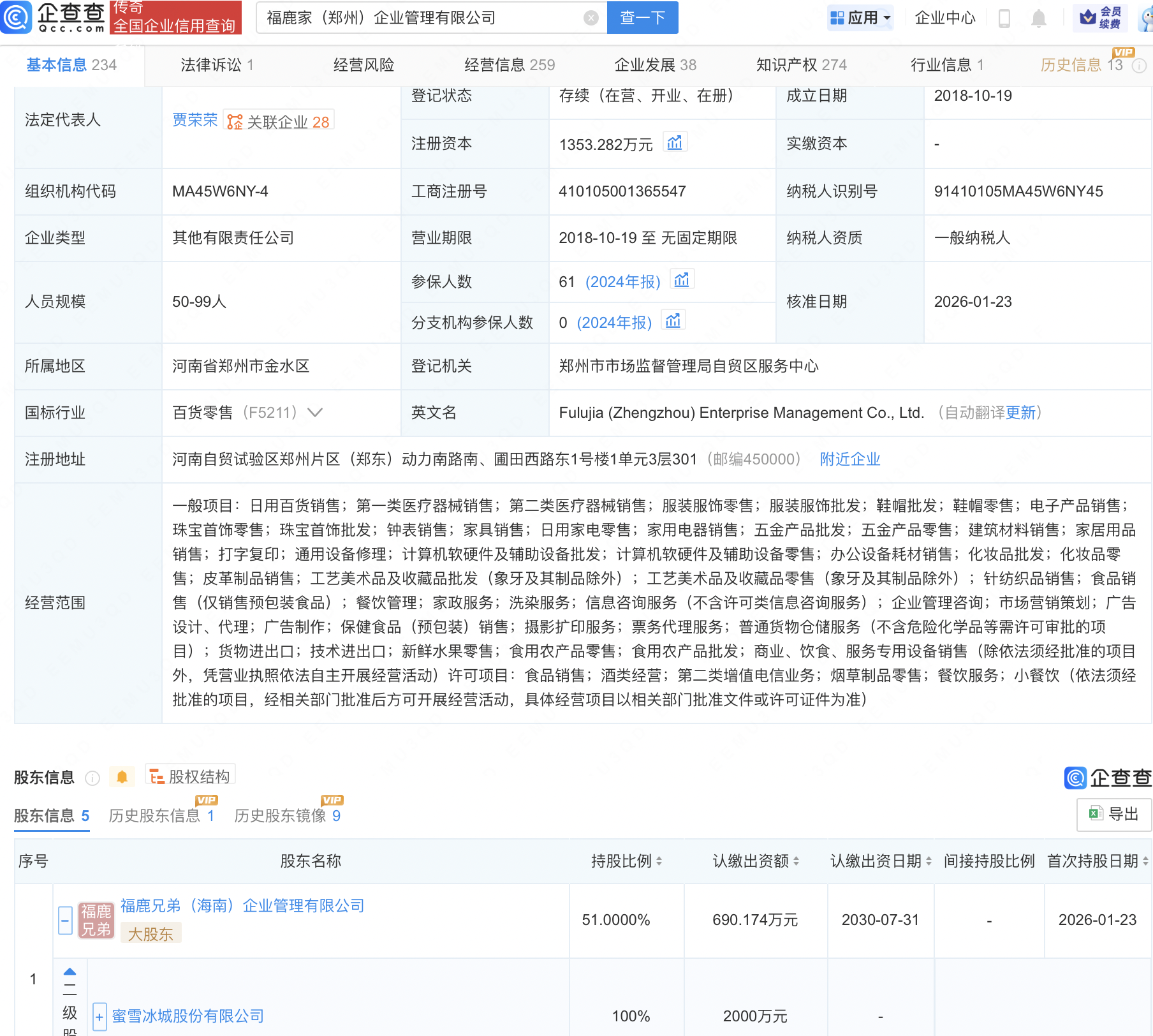 企查查APP显示,近日,福鹿家(郑州)企业管理有限公司发生工商变更,新增蜜雪集团(02097.HK)全资子公司福鹿兄弟(海南)企业管理有限公司为股东,持股51%,同时注册资本增至约1353.3万人民币。企查查信息显示,该公司成立于2018年,法定代表人为贾荣荣,经营范围包括食品销售;酒类经营;第二类增值电信业务;烟草制品零售等。据其官网,该公司为鲜啤福鹿家关联公司,其拥有精酿鲜啤生产工厂。