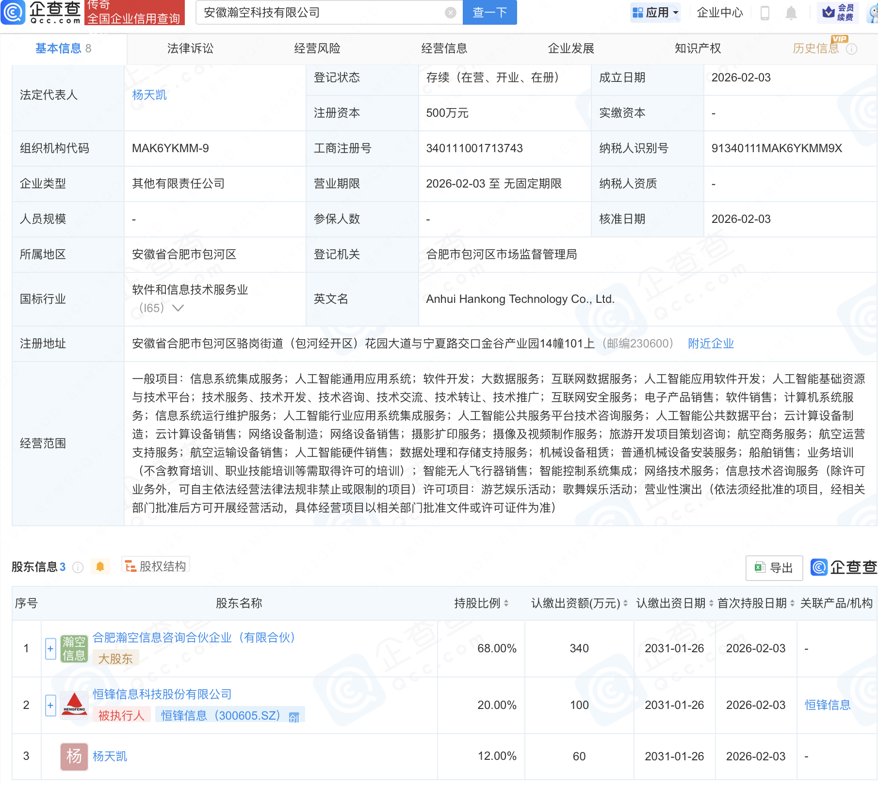 恒锋信息等成立新公司,含AI及航空相关业务