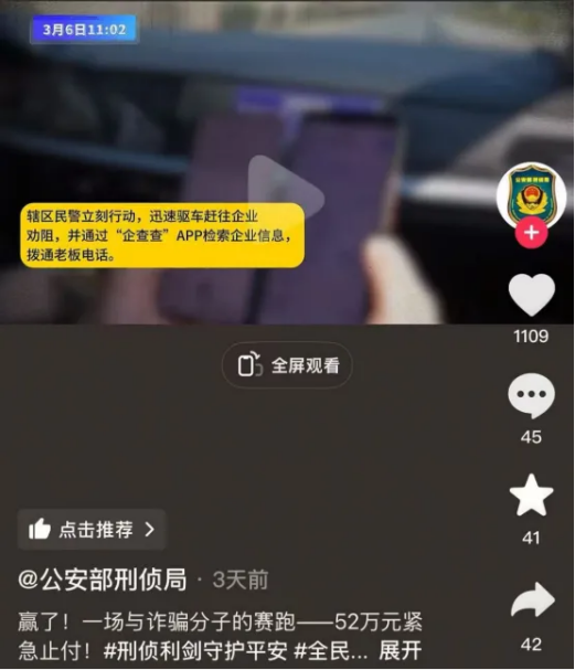 2025 年,公安部刑侦局官方视频号发布的一起案例颇具代表性:某市反诈中心发现一企业财务人员疑似遭受 "冒充老板" 诈骗,52 万元资金危在旦夕。辖区民警通过企查查快速检索企业信息,同步联系企业负责人,并驱车赶往企业,及时对财务人员进行了有效劝阻,避免了重大财产损失。