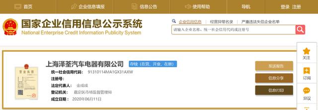 据国家企业信用信息公示系统,上海泽荃2020年6月11日成立于上海市嘉定区,注册资本为5,000万元,法定代表人金成成,沪光股份100%持股。该企业营业范围为汽车零配件批发、机械设备销售、金属制品销售、汽车零部件研发等。成立近一个月之久的子公司未在招股书中披露,沪光股份对此或应作出解释。