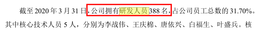 两数相加后用工总人数分别为2,060人、1,891人、1,667人、1,651人,明显与问询回复的合计员工数有较大差别,尽管问询回复中披露的是月均人数。此外,招股书披露2020年3月末研发人员为388人,问询回复中则显示当期研发人员的平均人数为378人,研发人员的变动也较为明显。