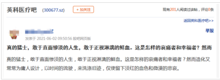 消息出来后,5万股民炸锅了,有股民表示,减持不是不可以,但这个比例太大了,而且是从老板到核心管理层一起减,说明最了解公司的一帮人已经觉得公司的股价值得卖出了,大A套路深,我要回农村。也有部分股民表示抄底机会到了,还有网友引用鲁迅的名言称“真的猛士,敢于直面惨淡的人生,敢于正视淋漓的鲜血”,表达了其对英科医疗的看好。