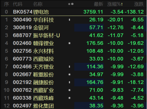 锂矿股全线下挫 华自科技等7股封跌停