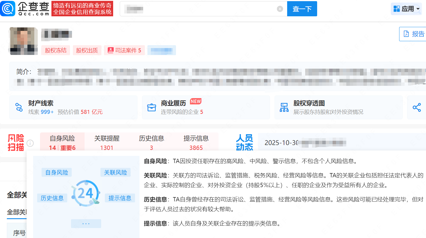 更关键的是查人物风险,包括: