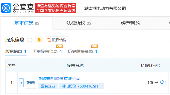 企查查APP显示,近日,湖南湘电动力有限公司对外投资成立多家能源科技公司,包括湖南湘电恒储能源科技有限公司、湖南湘电云储能源科技有限公司、湖南湘电汇储能源科技有限公司等。企查查股权穿透显示,新成立公司均由湘电股份(600416)间接全资持股。