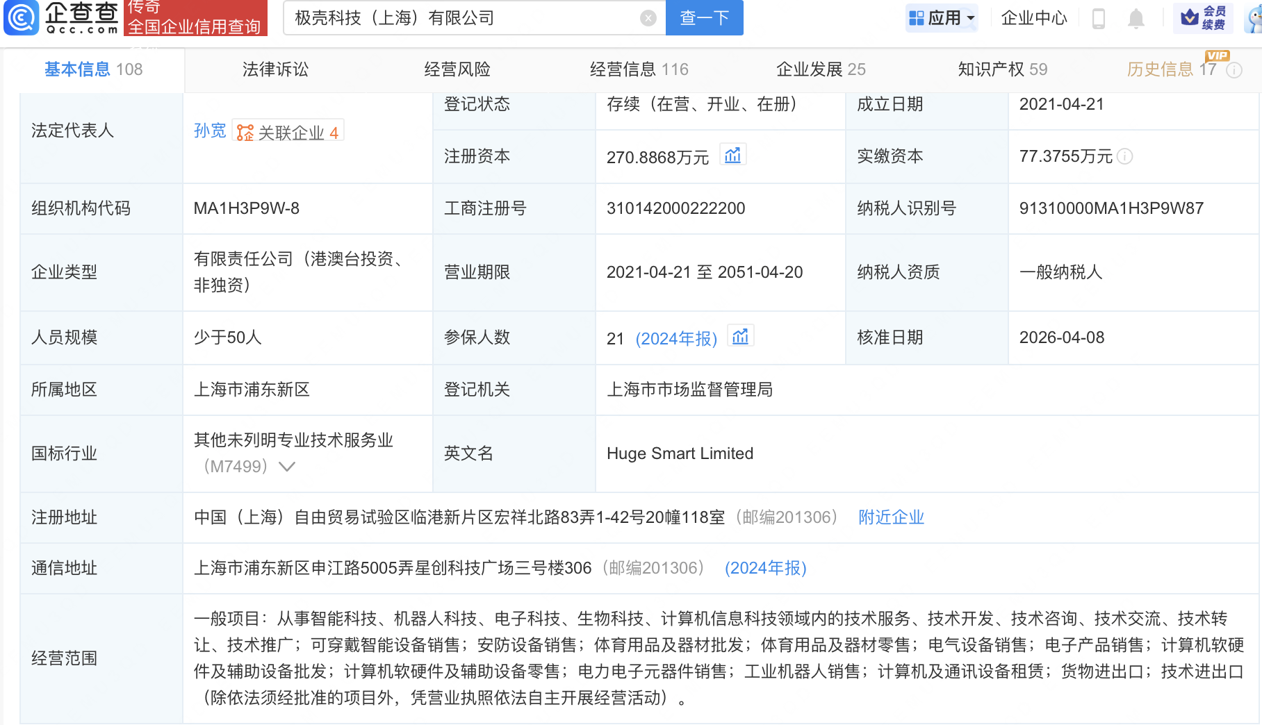 企查查APP显示,近日,极壳科技(上海)有限公司发生工商变更,新增蚂蚁集团旗下上海云玚企业管理咨询有限公司等为股东,同时注册资本增至270.89万元。企查查信息显示,该公司成立于2021年,经营范围包含:从事智能科技、机器人科技、电子科技、生物科技、计算机信息科技领域内的技术服务等。公开信息显示,该公司是一家消费级外骨骼企业。