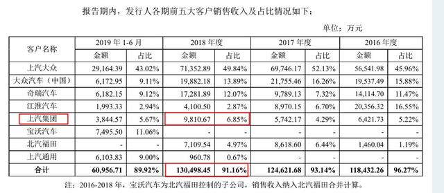 更诡异的是,沪光股份向上汽大众汽车有限公司(下称:上汽大众)销售发动机线束的金额上半年竟然比全年的数据还要高。据2019年9月版招股书披露,2019年1-6月沪光股份向上汽大众销售发动机线束金额为166.98万元,占主营业务收入比例为0.25%。