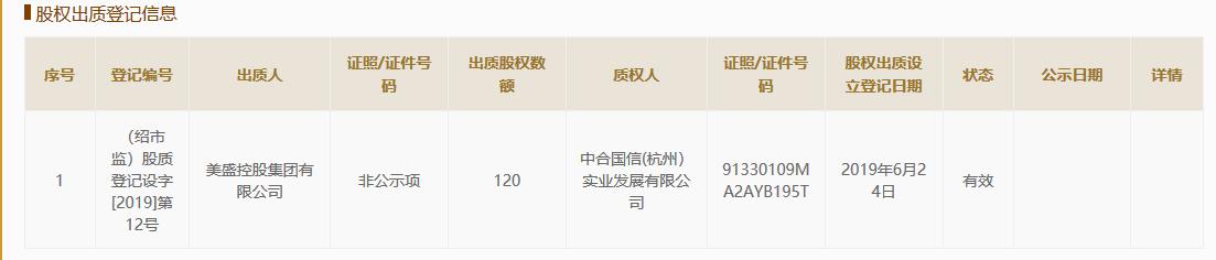 企信网显示,2019年6月2日,美盛控股将其持有的亿田股份120万元出资额全部出质给中合国信(杭州)实业发展有限公司(下称”中合国信实业”)。