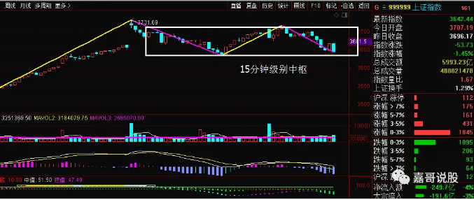 从技术上看,大盘冲高回落符合预期,现在基本已经形成了一个15分钟级别中枢,等待的就是这笔止跌,本人认为周二应该还有一个探底过程,探底中,第一观察是否有1分钟背驰,第二,主要看前低3635点附近是否有止跌。如果两者都满足的话就会形成共振,那么重新启动的概率就相对较大。而创业板指数目前空间上还没有到位,支撑位在3070点附近。