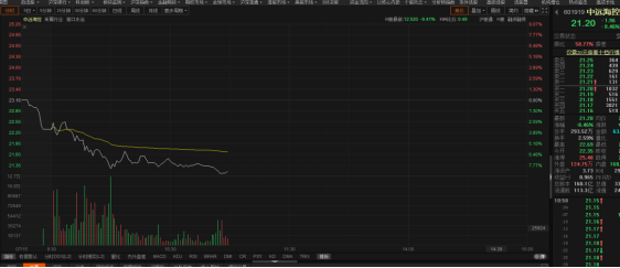 7月15日,中远海控继续下行。截止发稿,A股报价为212.6元/股,跌幅为8.12%;H股报价为12.58港元/股,跌幅为8.97%。
