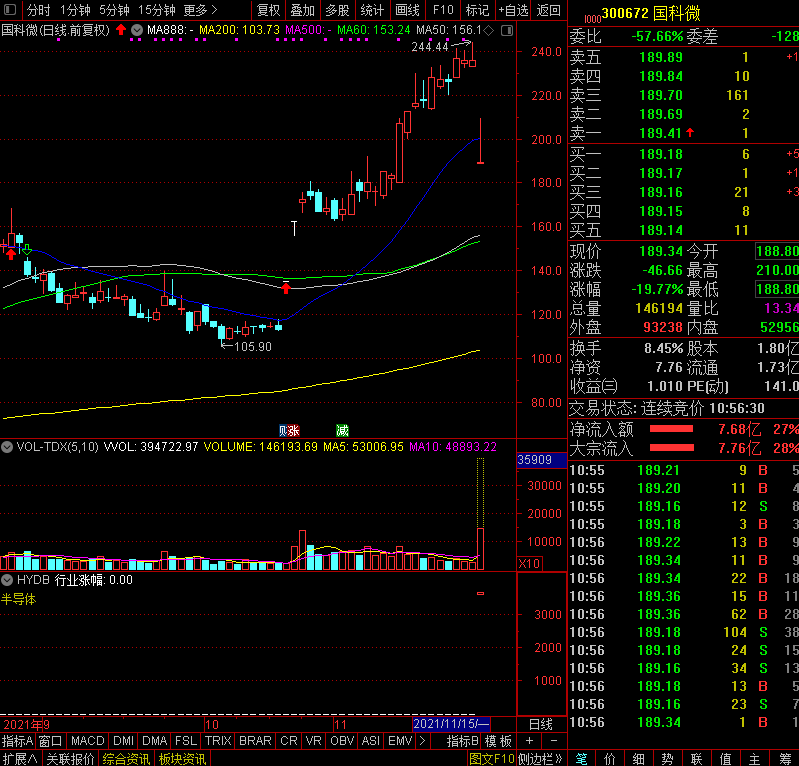 11月25日早盘,国科微集合竞价跌停开盘,截至发稿报189.18元,跌19.77%。